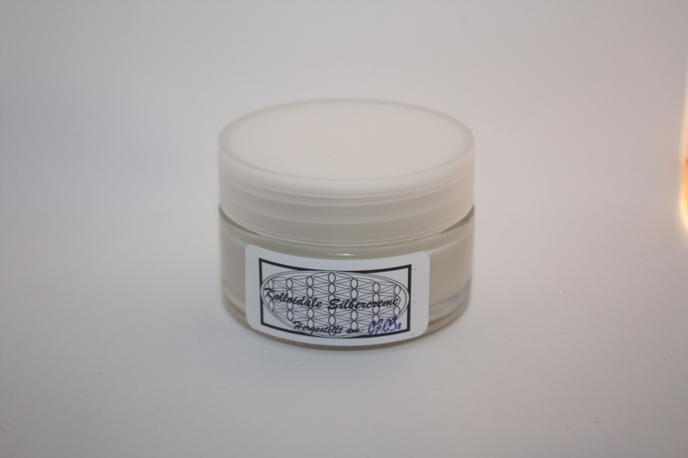 Sanfte Pflegecreme mit fein verteilter kolloidaler Silberdispersion. Cremige Textur, lässt sich gut verteilen und zieht angenehm ein. Farbnuancen/leichte Eintrübungen sind herstellungsbedingt und kein Qualitätsmangel.
